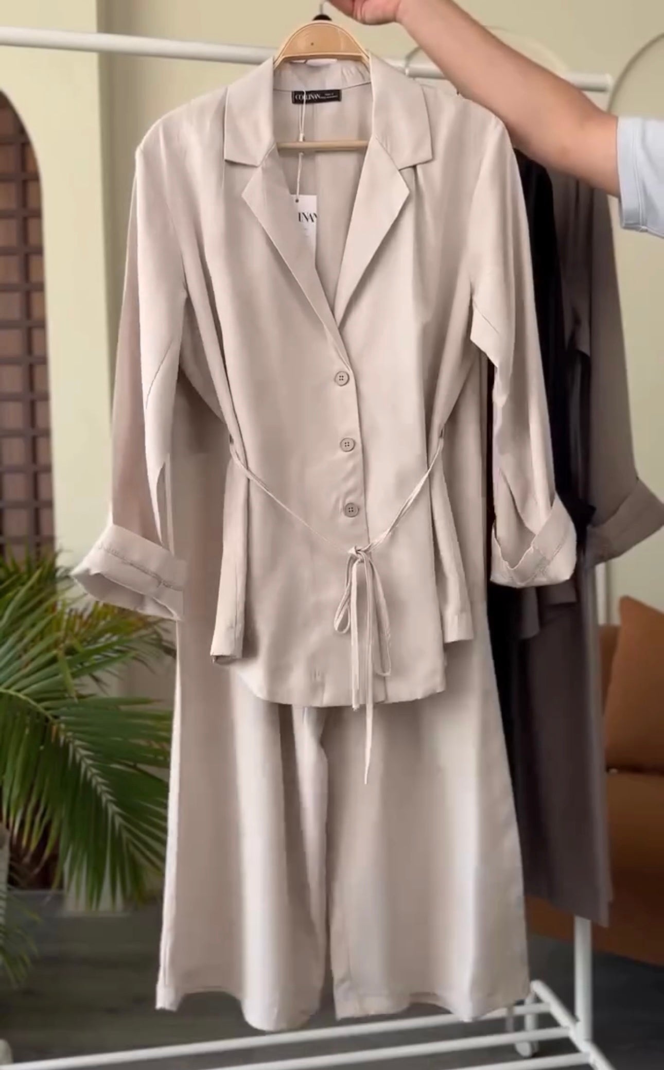 Women Coat Collar Shirt & Trouser Set