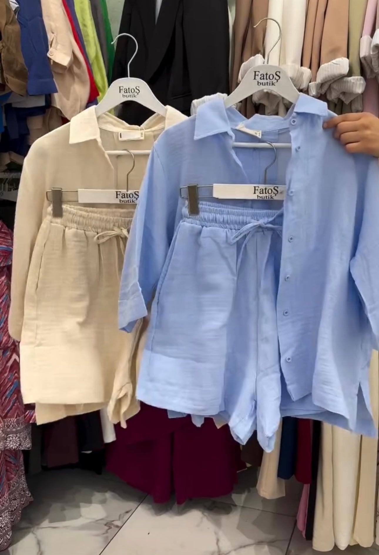 This women's poly linen shirt and short set blends breathable, wrinkle-resistant fabric with a relaxed fit for all-day comfort and easy care. The lightweight poly linen material ensures durability and moisture-wicking properties, making it ideal for warm weather. Designed for versatility, this set offers a polished yet casual look suitable for various occasions, enhancing your wardrobe with both style and practicality.