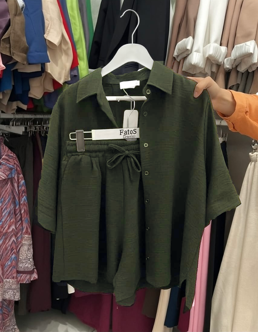 Women's Poly Linen Shirt & Short Set